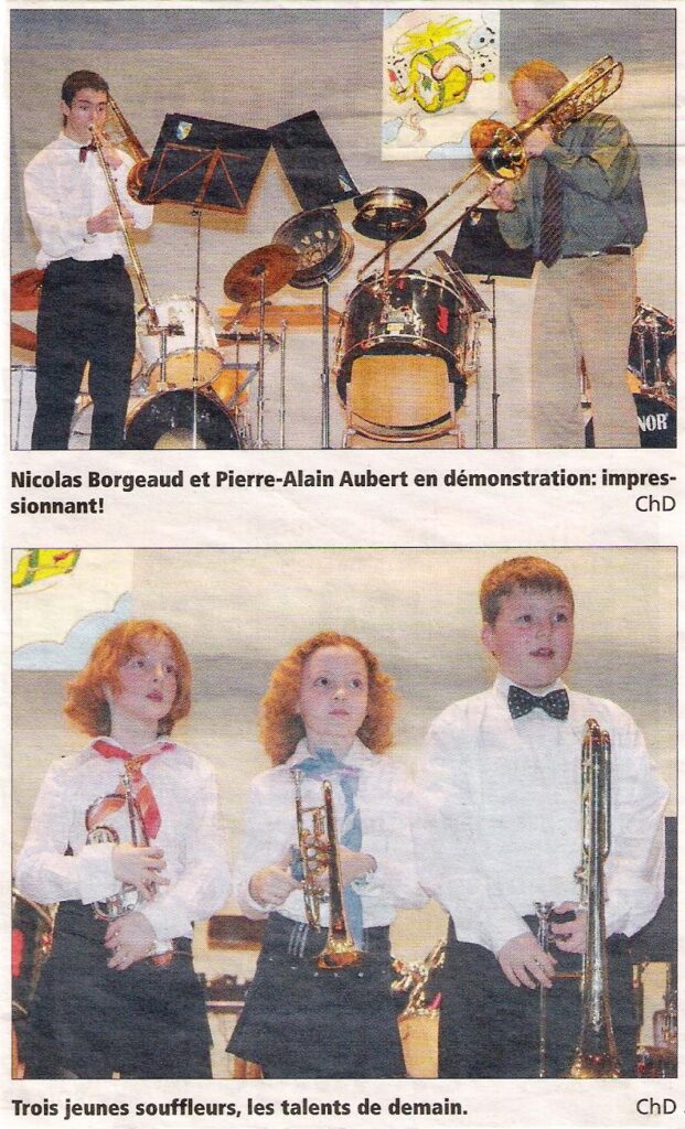Nicolas Borgeaud , 16 ans est déjà plusieurs 1er prix de sa catégorie au giron du pied du jura ; qualifié à de nombreuse reprise pour la finale Vaudoise de solistes et ensembles de cuivres, à également un championnat Suisse à son palmarès avec une 5ème place au final. Bravo.